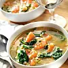 Vänd ner linserna och häll på vatten och lägg i buljongtärningen. Koka upp och koka linserna mjuka i 10–12 minuter. Lägg i tomater och spenat, koka ytterligare någon minut. Smaka av med salt och nymalen svartpeppar.