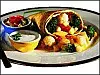 Smörfräs paprika, squash, broccoli, blomkål och majs. Salta lätt. Fyll strutarna med grönsakerna. Servera salsa till, och yoghurt att skeda över.