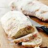Vält ut den färdigjästa degen på mjölat bord. Den ska inte knådas alls, utan hanteras varsamt så att luftbubblorna bevaras.