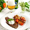 Örtkräm: Blanda kesella med riven fetaost och örter. Smaka av med salt och peppar och servera till biffen. Servera med rostad potatissallad.