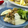 Du behöver Sås: 3 dl crème fraîche 2 dl vatten 1 st fiskbuljongtärning 1 msk maizena redning 1 st citron rivet skal och saft Servera...