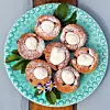 Sätt muffinsformar i en muffinsplåt. Skeda smeten i formarna. Lägg några hallon och en bit vit choklad i varje form. Grädda i mitten av ugnen, ca 20 minuter. Låt kakorna svalna på galler.