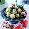 Blanda i ägg, ost, citronskal, tranbär, salt och peppar. Forma smeten till bollar och rulla i frön och kärnor.