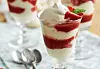 Varva glass med maränger, vispgrädde och jordgubbssås på fyra desserttallrikar eller i glas. Garnera med färska jordgubbar.