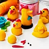 Dela upp i bitar och knåda in önskade hushållsfärger. Forma sedan till kycklingar, tuppar, ägg och andra roliga figurer.