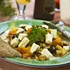 Blanda matkorn och rotfrukter. Servera med oliver och tärnad fetaost. Ett grovt bröd är gott till.
