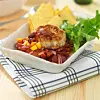 Du behöver Bönsallad: 1 st bönor 400 g 1 st paprika gul 1 st burk krossade tomater 1 st rödlök Servera med: sallad tortillachips Gör...