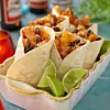 Du behöver Servera med: tortillabröd basmatiris kokt bönor kokta svarta tomater hackade crème fraîche Gör så här 1 Strimla kycklingen. Rör ihop limesaft, olivolja, pressad...