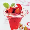 4. Varva is och bär i glas och toppa med färska jordgubbar och citronmeliss.