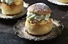 Minisemlor blir en lyxig munsbit att bjuda på. Här görs fyllningen på mandelmjöl. Toppa med mandelspån för extra tugg.