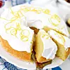 Blanda mjöl, vaniljsocker och bakpulver. Rör ner i smörblandningen tillsammans med citronsaft och mjölk. Häll smeten i en smord form, gärna bröad med mannagryn.