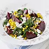 3.??Fördela moghrabiah, rödbetor och spenat på tallrikar, smula över fetaost och toppa med rostade solrosfrön.