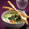 Tillsätt musslor och dill. Låt soppan bli het. Servera den med sesamstänger.