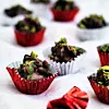 Klicka smeten i små formar och garnera med hackade pistaschkärnor. Låt stelna i kyl och förvara i en burk med lock i kyl.