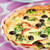 5. Fördela grönsakerna och oliverna i pajskalet.