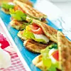 Blanda till våffelsmeten enligt receptet på äggvåfflor och vispa i de hackade örterna och peppar.