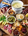 4. Fondue: Riv osten grovt. Gnid in fonduegrytan med snittytan på en delad vitlöksklyfta. Häll i vinet och låt det bli varmt. Häll i osten och låt den smälta i vinet under oavbruten omrörning.