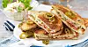 Lägg på de andra bröden med stekta sidan mot fyllningen. Stek mackorna på båda sidor i en stekpanna med smör. Lägg på ett lock och stek tills osten smält. Skär på diagonalen och servera med coleslaw.