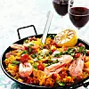 Ställ paellagrytan direkt på bordet och servera med stekta citronhalvor att pressa över.