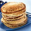 Rör om och blanda i oljan. Värm en stekpannan med lite extra fett och börja gräddningen. Ta 1/2 dl smet till varje pannkaka och grädda vackert gyllene på båda sidor. Servera blåbärsyoghurten till.