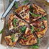 Dela degen i 2 delar. Strö kli på bakbordet och kavla ut till 2 runda pizzor. Lägg pizzabottnarna i 2 runda ugnsfasta formar så att kanten sticker ut ca 5 cm. Bred på tomatsås och fördela färsk mozzarella, salami, riven mozzarella och champinjoner. Vik in kanterna och strö över oregano. Grädda mitt i ugnen ca 20 min. Toppa med rucola och pinjenötter vid servering.