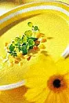 Mixa soppan i matberedare. Häll tillbaka den i kastrullen, tillsätt vispgrädden och koka upp igen. Smaka av med salt och peppar.