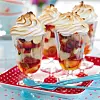 Fördela frukten i glasen. Skeda i marinaden och låt dra i 30 minuter.