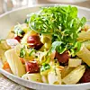 4: Blanda pastan med grönsaksfräset, korven, citronskal, citronsaft och basilika. Servera med lite extra olivolja, rucolasallad och riven parmesan.