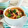 3. Rör ner kokosmjölk och chilipasta. Smaka av med salt.