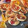 Dela degen i 10 bitar och kavla ut bitarna till runda små pizzor. Lägg pizzorna på plåt med bakplåtspapper.