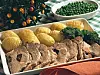 Lägg köttskivorna på varmt fat tillsammans med potatisen. Servera med en grönsak.