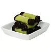 Dela degen i ca 20 lika stora bitar. Forma ca 5 cm långa rullar. Klä rullarna med en bit grön marsipan. Se till så att marsipanen täcker.