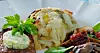 Ett nytt och spännande sätt att servera potatis! Riven potatis och strimlad purjolök rostas i ugnen innan det formas och läggs på tallriken.