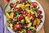 Skiva avokadon och halvera tomaterna. Plocka kärnorna ur granatäpplet.
