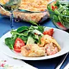 Strö över osten. Gratinera mitt i ugnen ca 10 minuter tills osten smält och fått fin färg. Servera med sallad.
