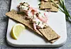Servera räkröran på knäckebröd, med citronklyftor till.