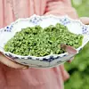 Finhacka ramslöken. Mortla eller kör bladen i en matberedare tillsammans med nötter eller mandel.