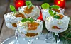 4 Varva gräddgröt, hjortronsylt och krossade drömmar i fina glas eller skålar.