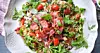 Hacka hälften av ­rucolan grovt och rör ner tillsammans med ­parmesan och tomater. Smaka av med salt och peppar.