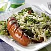 Hacka löken och dela broccolin i mindre bitar. Lägg ner i grytan och låt sjuda i 3 minuter till. Späd eventuellt med mer vatten.