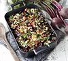 Det är gott att kombinera rödbetor och rikligt med torkade örtkryddor. I den här gratängen använder vi kokta rödbetor som säljs bland grönsakerna i din butik.