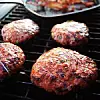 Blanda liquid smoke med vatten och rör ner ströbrödet. Låt svälla något. Dela och kärna ur den röda chilin. Hacka den finfint. Blanda färsen med chilin, ströbrödsmixen och den finhackade persiljan. Smaka av med salt och kajennpeppar. Fukta händerna med lite vatten och forma smeten till fyra fina, stora hamburgare. Torka av grillgallret och olja in det lätt.