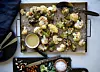 Strö på chiliflakes och salt, ringla olivolja över. Stek i mitten av ugnen tills grönsakerna är mjuka, ca 20–25 minuter.
