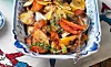 De rostade rotsakerna får god syrlig smak av en dressing som hälls på efter ugnsrostningen.