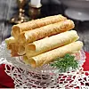 Rulla varje rån direkt efter gräddningen runt en kavelpinne eller blompinne medan rånet är varmt. Låt svalna på bakgaller. Servera till moussen.