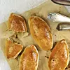 Pensla pirogerna med uppvispat ägg. Låt dem vila cirka 20 minuter.