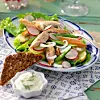 Du behöver Dressing: 2 msk rapsolja 2 tsk vitvinsvinäger Sås: 1 dl gravlaxsås 2 dl crème fraîche Servera med: bröd Gör så här 1 Skrubba...