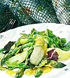 Skär av den nedre, träiga delen av sparrisen. Ta bort det grövre skalet med en potatisskalare. Koka dem 1 minut i lättsaltat vatten, spola dem kalla.