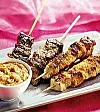 3. Trä upp köttet på grillpinnar, tre till fyra bitar på varje spett. Grilla spetten över en kolbädd samtidigt som du kontinuerligt penslar dem med jordnötsolja.