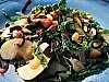 Lägg upp salladen på tallrikar. Strö över nötterna och ringla över såsen.